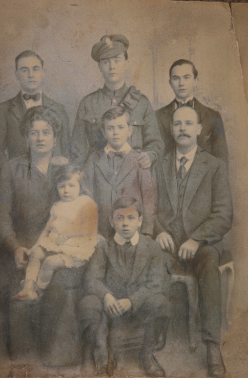 George Burgum (in uniform) is standing above his parents Catherine (Dyball) Burgum and George Burgum ((1869-1940). Also in the photograph are brothers Harold, Leonard, Leslie, Alan and daughter Millie.