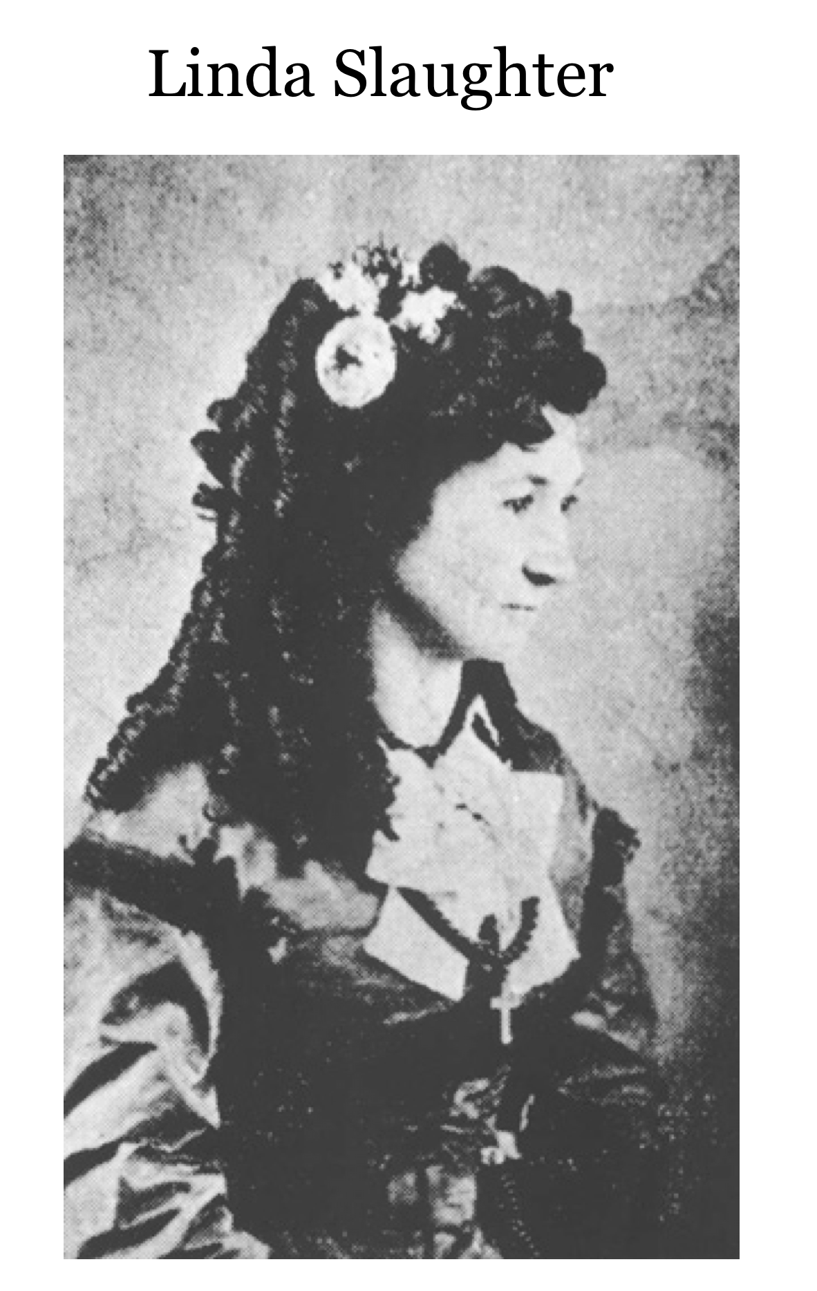 Linda Slaughter was truly a remarkable women. She married Dr Benjamin Slaughter and found herself living in an army fort where the weather was harsh and fort frequently attacked by Indians. Later they moved to Camp Hancock, living in a tent, where she set up a Sunday School. She wrote articles about the West, which were published "back East". First post mistress, first Superintendent of Schools and so much more! |