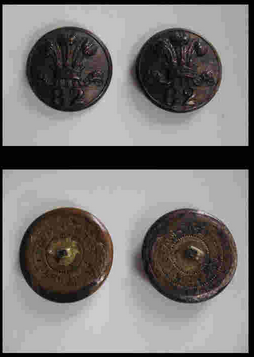 However, on the night of 30th March 1851, when the 1851 census was recorded, George Burgum was back staying at the Cambridge Barracks, in Portsmouth, in Hampshire, in the south of England, perhaps to help supervise the impending transfer of the Regiment. The census confirmed he was a Colour Sergeant in the 82nd Regiment of Foot (Prince of Wales Volunteers). (left - two brass 82nd Regiment tunic buttons, both missing their reverse lugs. They have the makers details "Hebbert & Co, 8 Pall Mall") |