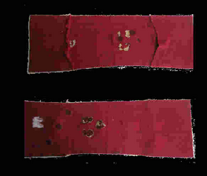 Picture, right - A red strip of old cloth - sown up at either end and originally housing his medals - possibly part of his Serjeant Major's tunic sash.