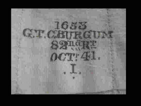 Picture below - Soldiers sewing repair kit belonging to George Burgum - this being of white cloth, and designed for holding all materials required to men his kit in the field, it is issue stamped at one end with a circle and some script is visible inside - possibly an 'Indian script'.