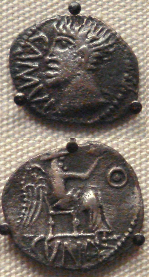 Picture (right) - Several pre-Roman British coins were discovered at Ariconium, including one minted by Cunobelin. This is an example of a Cunobelin coin, not the actual one found. |