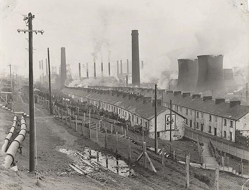 VICTORIA joins Ebbw Vale on the south side of the town. It has a station on the Western Valleys section of the Great Western railway. Situated here were the Baptist, Congregational and Calvinistic Methodist chapels, with Welsh services, and a Wesleyan chapel. The picture (above left) shows the Victoria Iron Works. The picture (above right) shows Victoria with its rows and rows of terraced housing.