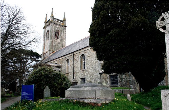 licensed for reuse under this Creative Commons Licence. HELSTON ST MICHAELS PARISH CHURCH is in Cornwall, England (see picture above). It was built, as the gift of the Earl of Godolphin, between 1751 and 1761. It replaced an earlier structure, which had been struck by lightning and burnt down. The design with its' tall bell tower was by Thomas Edwards of Greenwich and the interior, with its gallery and iron columns, was very similar to the church of St. Alfege at Greenwich, designed by Hawksmoor. In 1830 a porch of granite with pilasters was built and, in addition, a staircase leading up to the gallery. The interior has a very large brass chandelier with 24 branches, dated to 1762, given by the Earl of Godolphin at the time the church was built. |