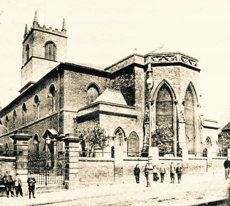 HANLEY ST JOHN THE EVANGELIST CHURCH, lies near Stoke on Trent, in Staffordshire. It was built in 1737 and boasts a 100 foot three-section tower and was later enlarged. The church was then rebuilt in 1788 at a cost of £6,000 and consecrated in 1790. It was described in one journal as part of "ecclesiastical architecture at its lowest ebb" and "Hanley parish church shared in the general depression of taste." It was constructed in plain brick edifice in a "debased" Gothic style. It had a nave, a chancel, quasi-aisles and a western tower of three stages, with embattled parapet of pinnacles, containing a clock and eight bells. . The polygonal chancel was added in 1872. The church was again restored and reseated in 1885, at an expenditure of £1,200 containing seating for 1,250 people (only 500 of them were free). The stone pinnacles on the corners of the tower were removed in the 1900's. A bid to close it in the 1970's failed and the church interior received a facelift instead. The tower was declared unsafe due to subsidence in 1985 and the church was subsequently closed. Bodies were exhumed from the graveyard to allow the construction of a ring road. It is called progress! |