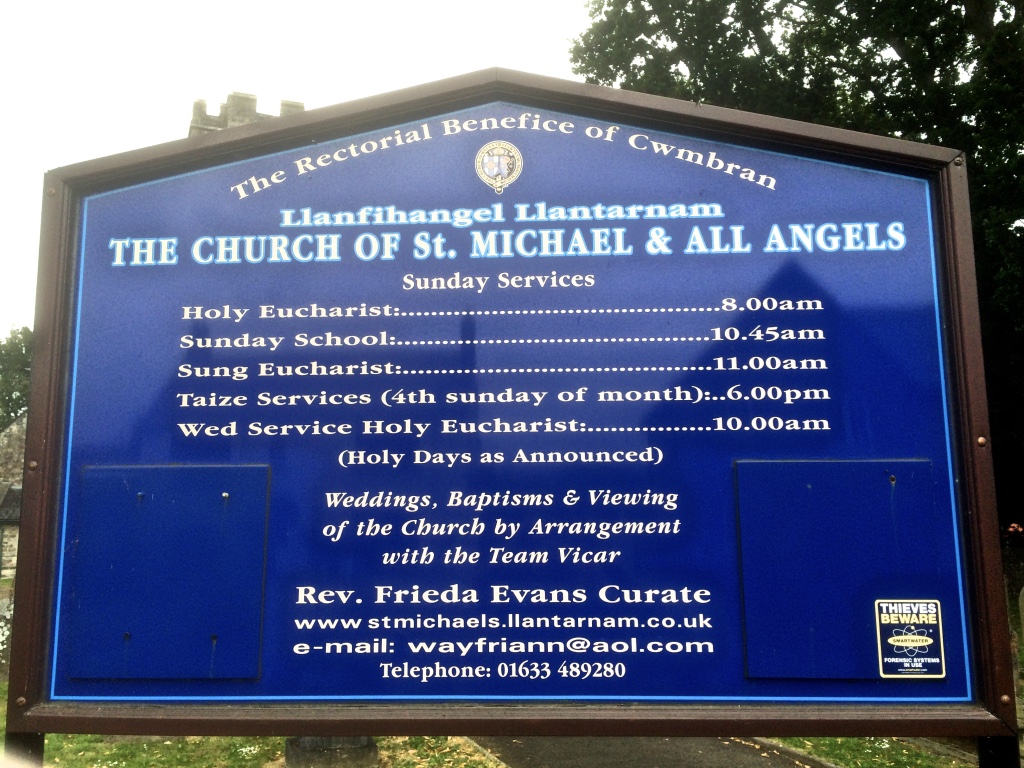 LLANFIHANGEL LLANTARNAM ST MICHAEL CHURCH was built in the early 12th century, apparently on the site of an earlier building. Major alterations and reconstruction took place in the 15th century. Larger windows were installed, the east wing was renovated and a north chapel built. The Tudor style tower was built in two stages with local stone, while stone arches and chancel arcade appear to have been built later, probably early 16th century.