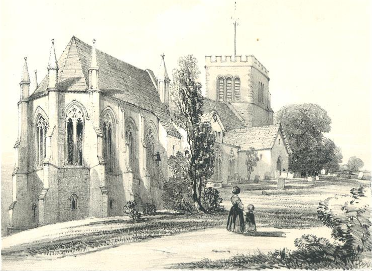 Madley Church tinted stone lithograph by C.Radclyffe. Image courtesy of ancestryimages.com The church has an unusual polygonal apse decorated with external pinnacles, which is quite rare. Only two other polygonal apses exist in England; one at Wells Cathedral in Somerset and another at Marden, in Hereford. The apse stands over an underground crypt thought to be the last medieval crypt in England. The interior has stained glass from the 13th and 14th centuries, the oldest dating to about 1250 AD. There are some fine of 14th century wall paintings, telling the story of Jesus's death and resurrection, dating from about 1300. The large font dates from the 12th century, while the pulpit is fairly recent. During the Middle Ages Madley was popular for pilgrimage, some because of its associations with St Dyfrig, but others because a statue of the Virgin Mary here was said to have special powers. It is believed the statue was located in the crypt beneath the chancel. The crypt is accessed by an almost hidden passage beside the Lulham Pew. Once used as a coal store, it is now used for meetings and meditation. |