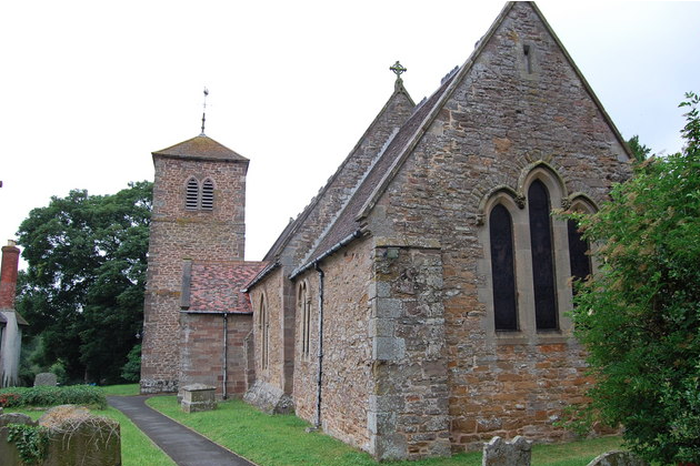 MORFIFORD HOLY ROOD lies in the village of Mordiford, just 4 miles south-east of Hereford. The village is built near a crossing of the river Lugg, shortly before it flows into the River Wye. The church stands at a crossroads in the village centre, near the bridge. Following a flood in 1811 the church was repaired and altered and then modified again during a resoration in 1868-1870. The church is medieval with a nave and a chancel with a central tower. Following the flood the original tower was dismantled at an angle to the nave. The 1868-70 restoration added a four-bay arcade to the nave and a vestry added to the chancel.