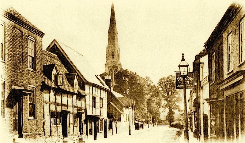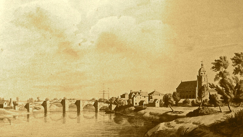 Upton-upon-Severn (or Upton-on-Severn) is a small town in the Malvern Hills District of Worcestershire, England, on the River Severn. It is located 5 miles (8.0 km) from Malvern, the bridge at Upton is the only one ending the English Civil across the river Severn between Worcester and Tewkesbury. The existing bridge, built in 1940, is a rivited steel cantilever bridge which replaced the 1854 bridge (pictured above). Upton was said to have been founded in 897. In 1651 General Lambert crossed the damaged bridge at Upton and barricaded themselves into the church. While the Royalist defenders attempted to remove them, Lambert's main force entered the town and captured it. The Battle of Worcester that followed led to defeat for the Royalists, War. The mediaeval church, dedicated to St Peter and St Paul, has a base dated to the 13th century, with the existing tower built about 100 years later. The main part of the church was rebuilt in 1750's with an uusual cupola design, later nicknamed the 'Pepperpot" (left). In 1879 a "new' church, also dedicated to St Peter and St Paul, was built at the southern end of the town (right).The floods mentioned in the National Gazetteer of Great Britain of 1868 (above) have continued to cause problems with the last serious floods in 2000 and 2007. There are numerous pubs and hotels in Upton. The White Lion Hotel is a 16th Century Coaching Inn, parts of which date back to 1510. It featured in Henry Fielding's famous novel of 1749, "Tom Jones". The railway station at Upton was closed and remaining line fell under the Beeching cuts of 1961.