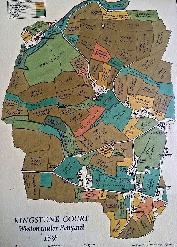 Above - St Lawrence Parish Church, Weston under Penyard. Left - A.T. Burgum was christened in the font here. Bottom left - Upper Weston Farm Bottom right - Kingstone Court Farm |